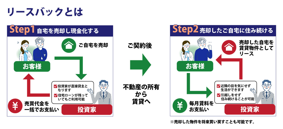 リースバックは、業者に買い取ってもらって、そのまま家賃を支払って住めるという一見良さそうに思えるのですが、家賃も結構高く、売却金額は安いので購入する業者側にメリットが大きいシステムであると感じました。